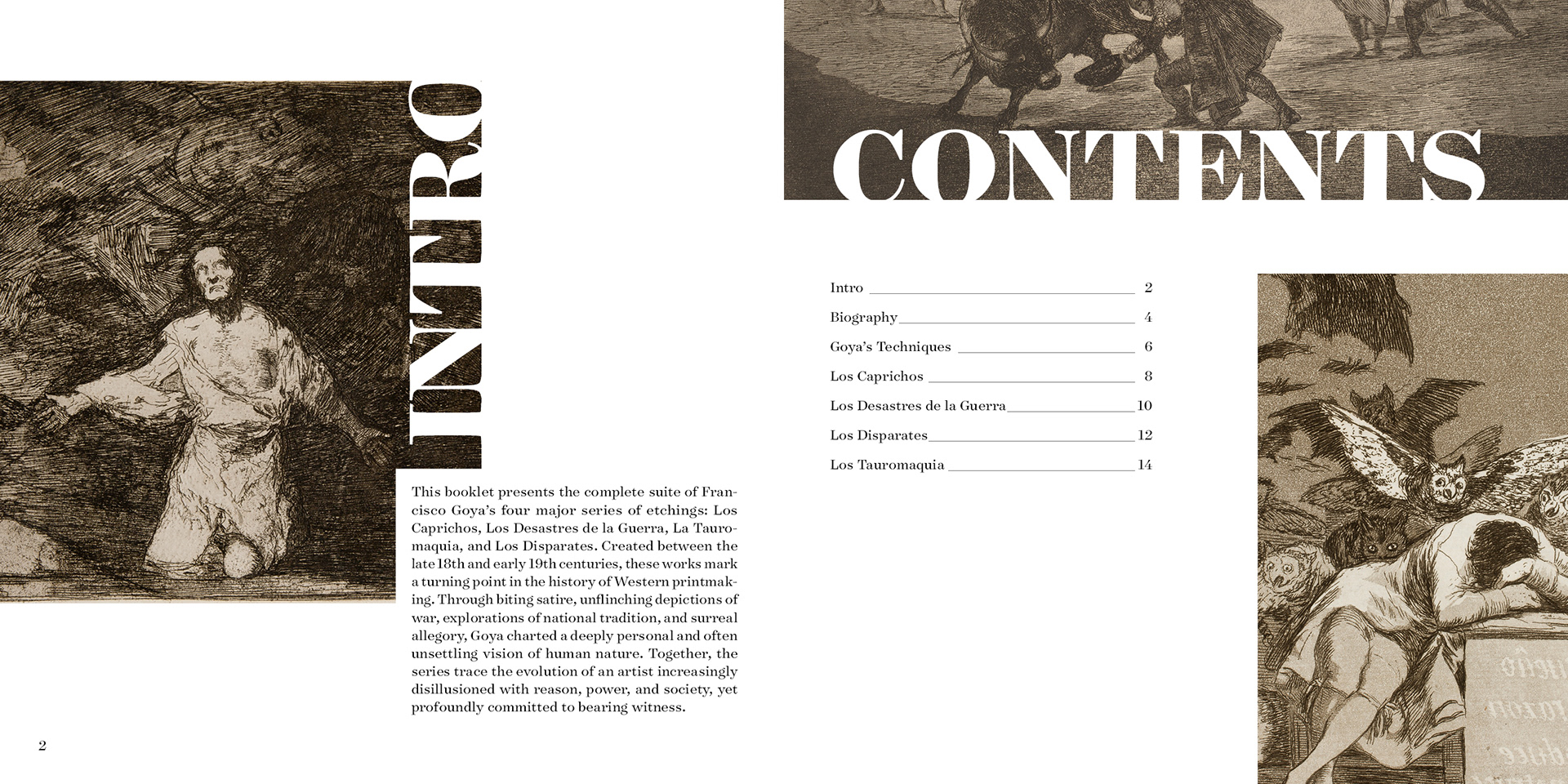 Francisco Goya has always been my admired artist and printmaker. I'm a hatching freak, and seeing all the hatching work this old man did on a cooper plate is pleasing. I'm thrilled to be able to do a project about him finally. This booklet will feature all four of Francisco Jose de Goya’s major etching series, offering a window into the artist’s mastery of printmaking and a haunting reflection of Spanish society during a time full of upheaval and change.