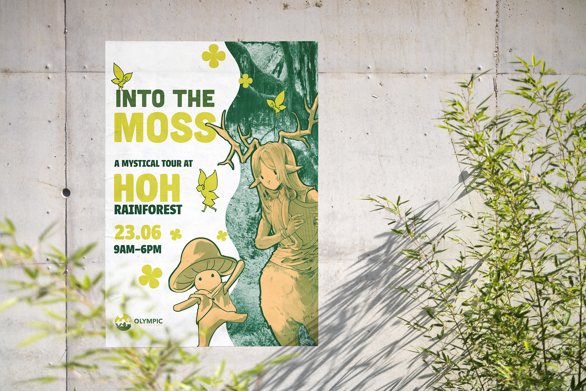This is one of my favorite projects I've ever created. Rebranding the Olympic National Park with my younger mind, I got to freely express my imagination and creativity. Hoh Rainforest is one of the most magical and whimsical places I've ever seen, in which could never miss the fairies and fantasy creatures.